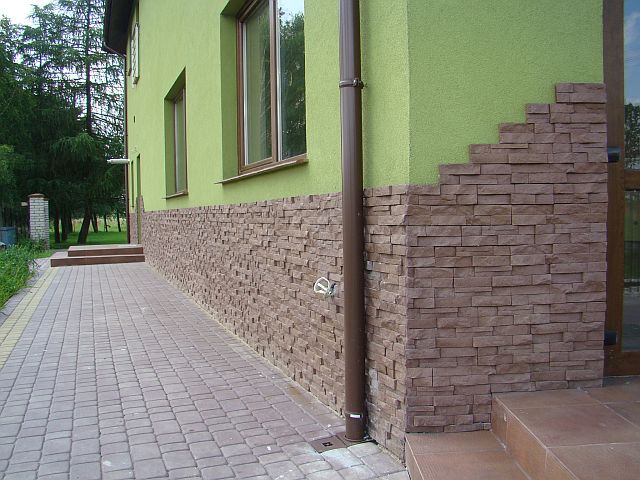 Kamień elewacyjny cementowy, barwiony w masie. Ma ciekawą. łupkową fakturę.